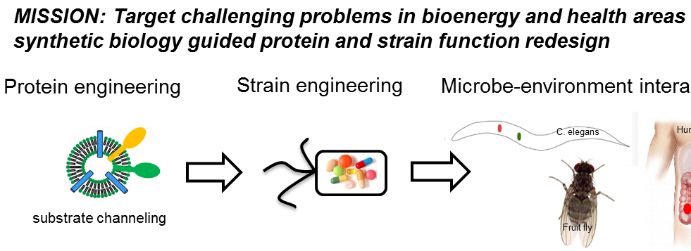 We focus on synthetic biology with advancing designs and applications. Using our expertise in machine learning, protein engineering, and microbial consortia engineering, we are developing new techniques to reprogram gut microbiome, protein machinery and biomaterials. Our current application areas include health, environment and energy.